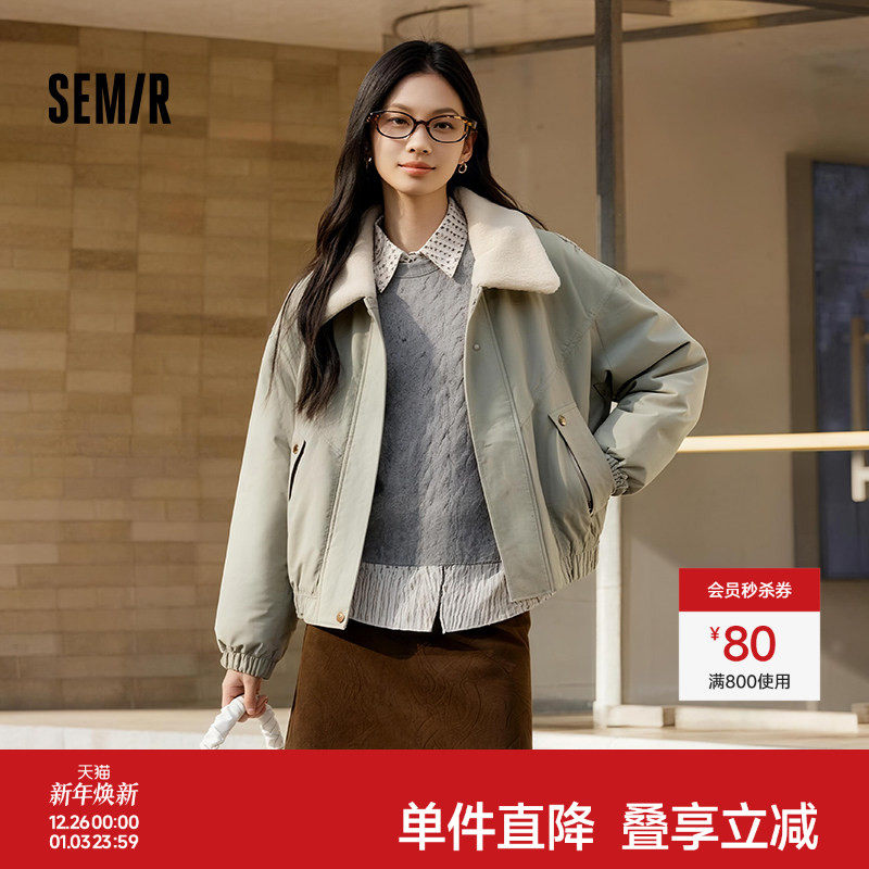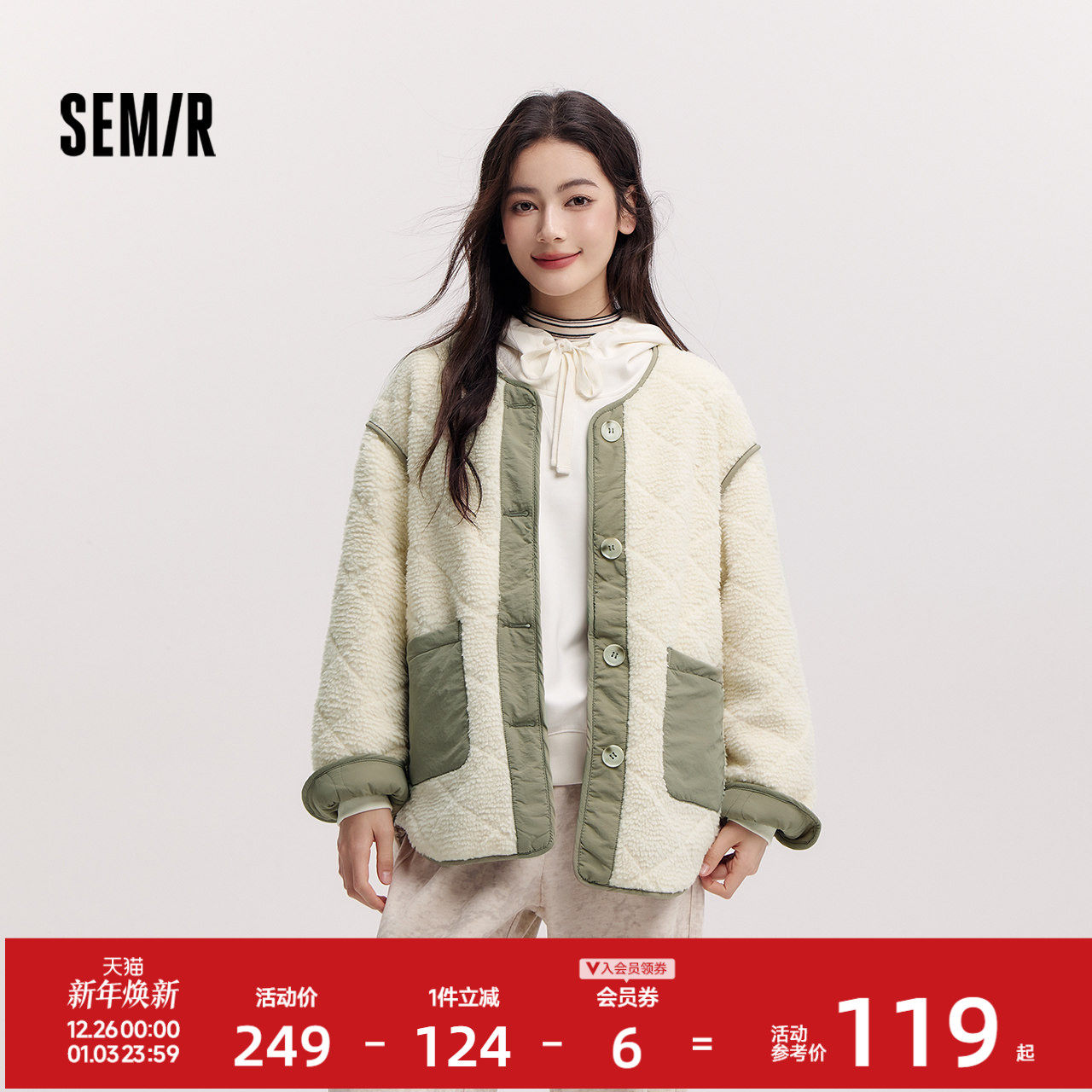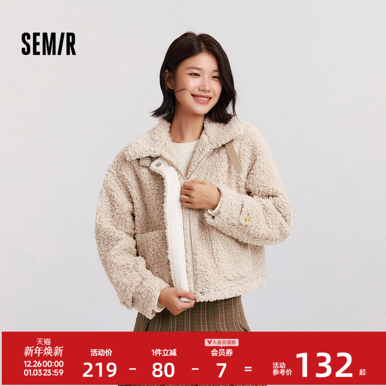 森马外套女冬季仿羊羔毛立领宽松上衣女生温柔慵懒简约风百搭夹克