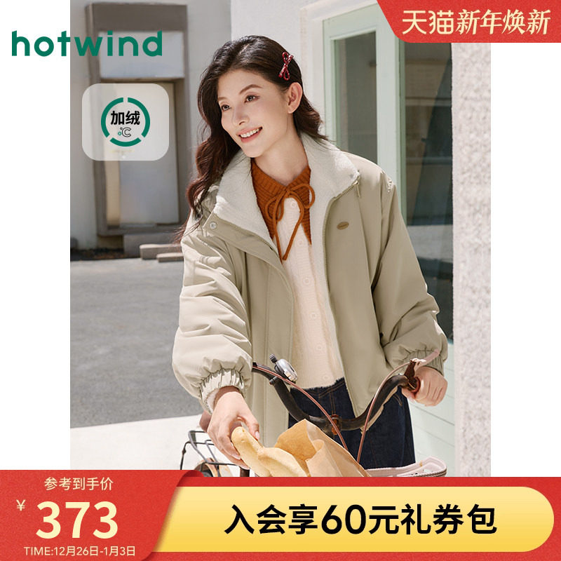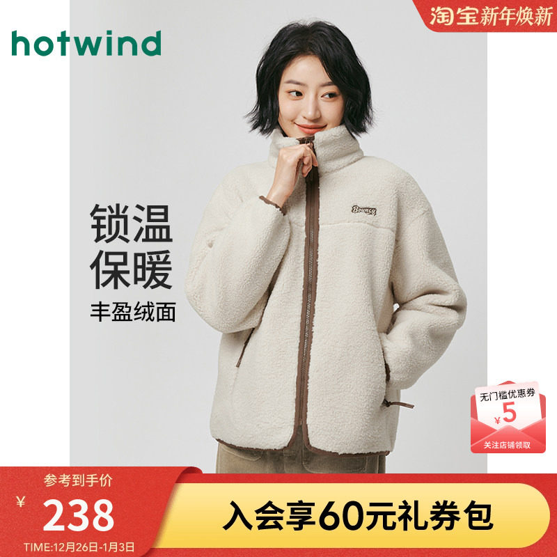 热风女士夹克外套上衣仿羊羔毛外套2025年冬季新款立领拉链内搭