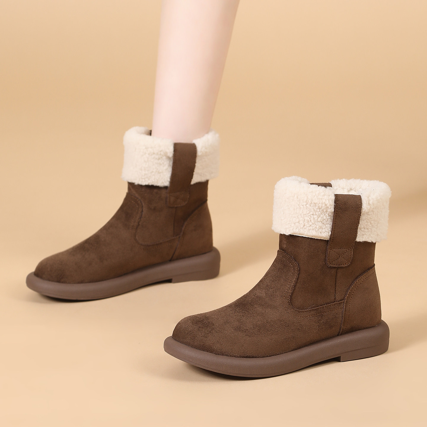 - 皮毛一体雪地靴女厚底