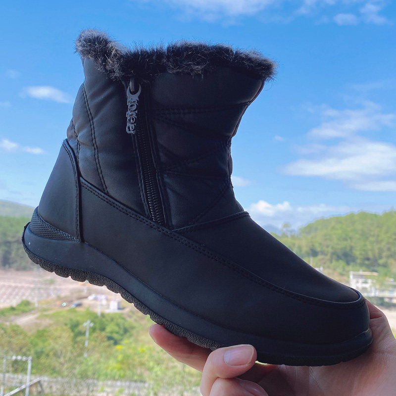 黑色加绒保暖雪地靴女款冬季加厚防滑棉鞋大码42码皮面防水工作鞋