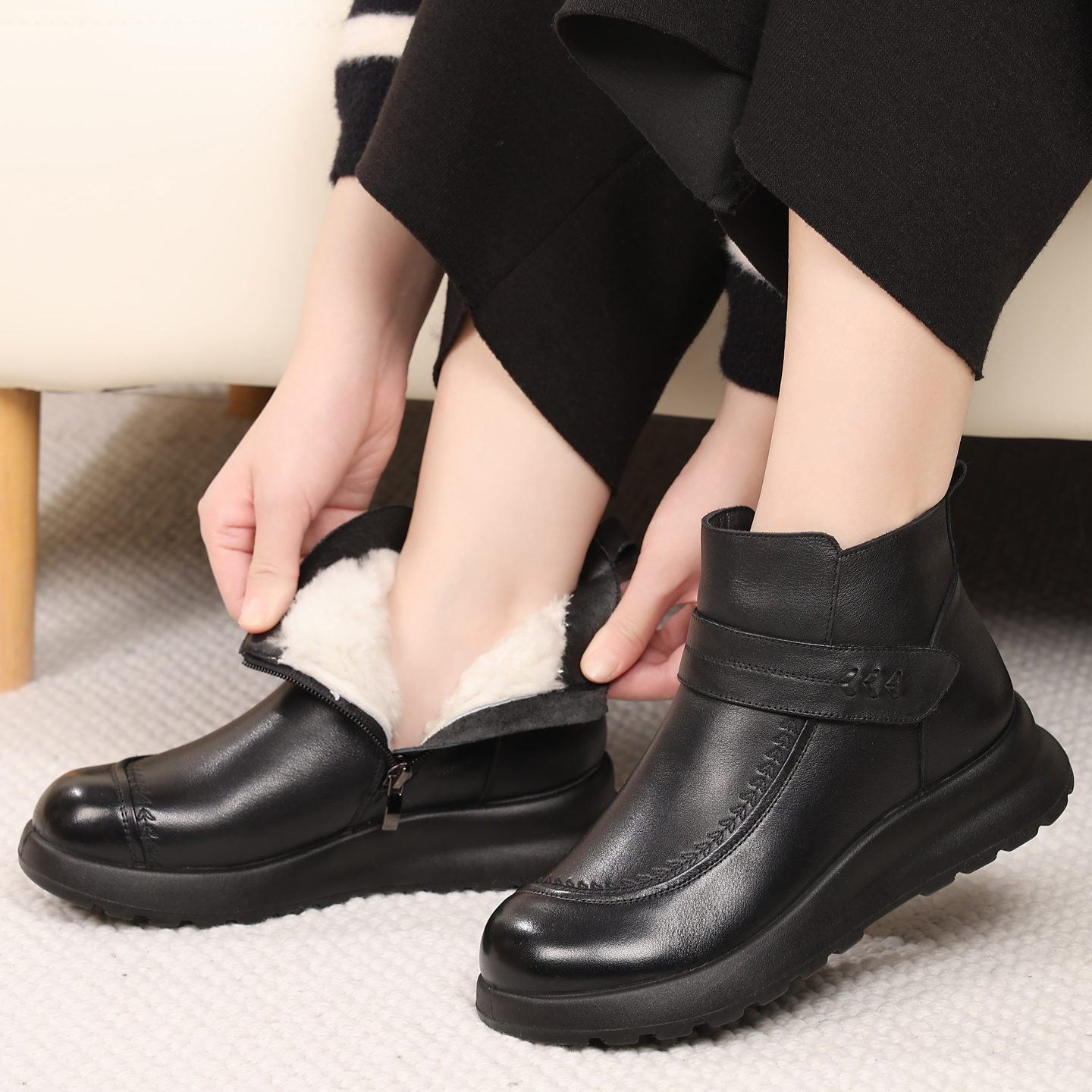 43特大42号女皮鞋中老年短靴子雪地靴马丁靴平底靴加大码妈妈棉靴