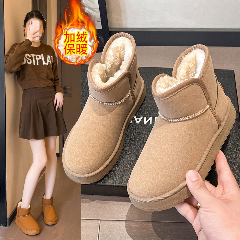 男女情侣棉靴42码冬季加绒短筒靴女靴子配裙子绒面时尚雪地靴百搭
