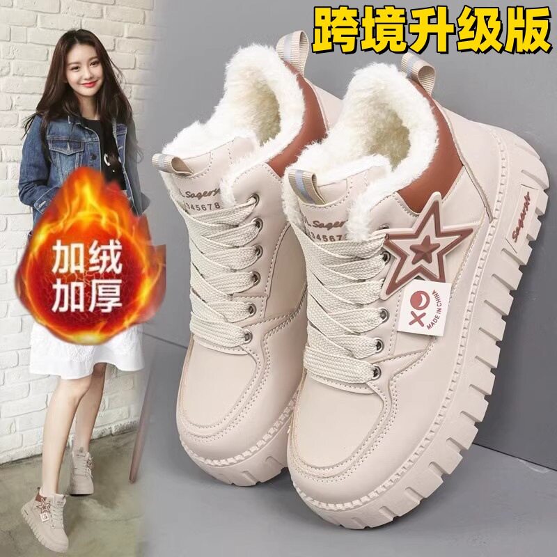 40-42码大码厚底雪地靴女短靴冬加绒加厚高帮棉靴保暖增高女棉鞋