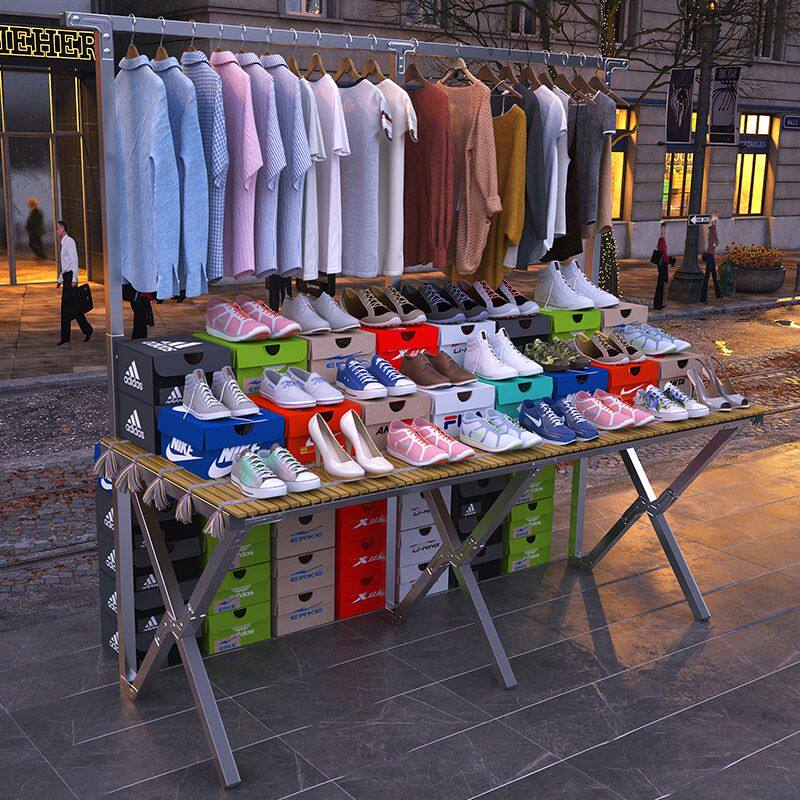 夜市摆摊展示架卖衣服鞋子摆摊折叠货架地摊便携折叠桌伸缩架竹厂