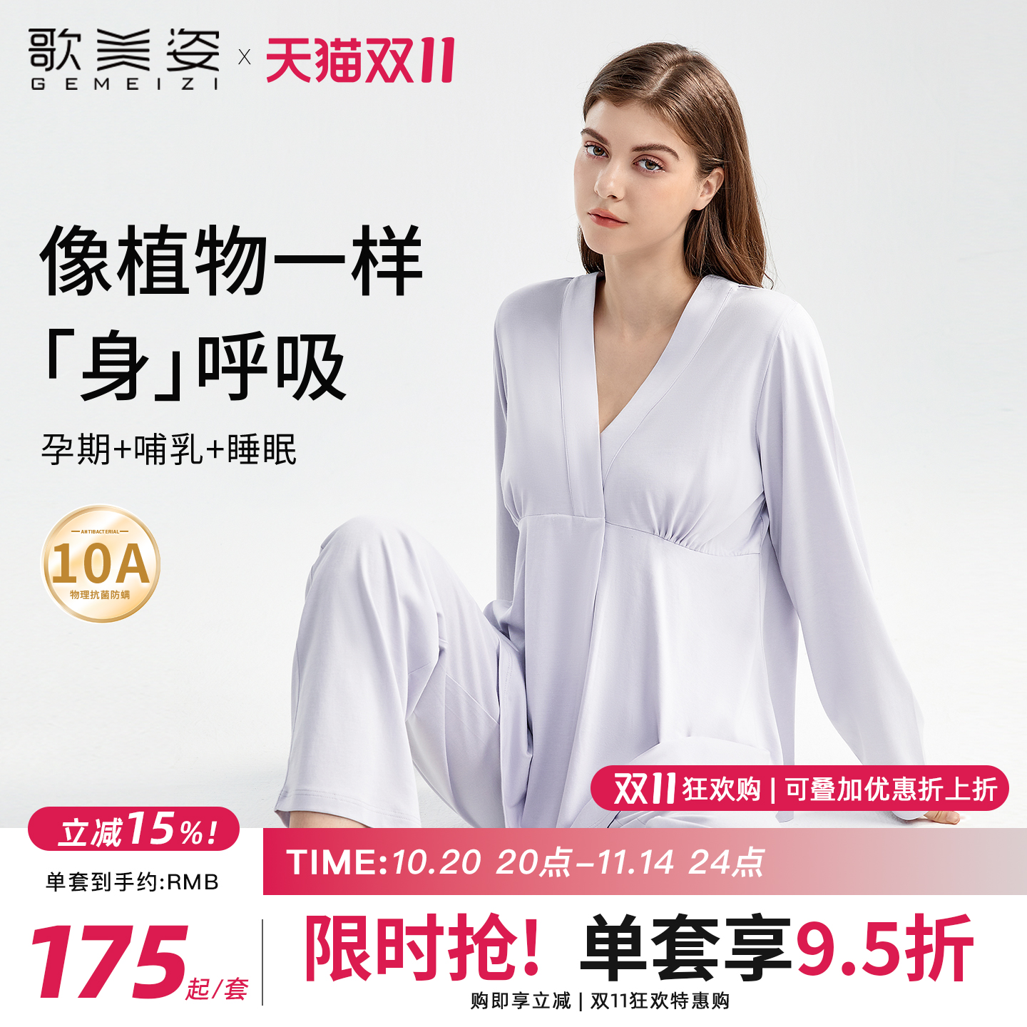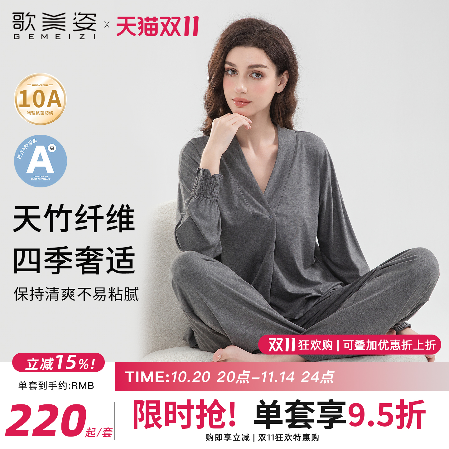歌美姿竹纤维家居月子服孕妇天竹睡衣产后哺乳春夏套装产前女薄款
