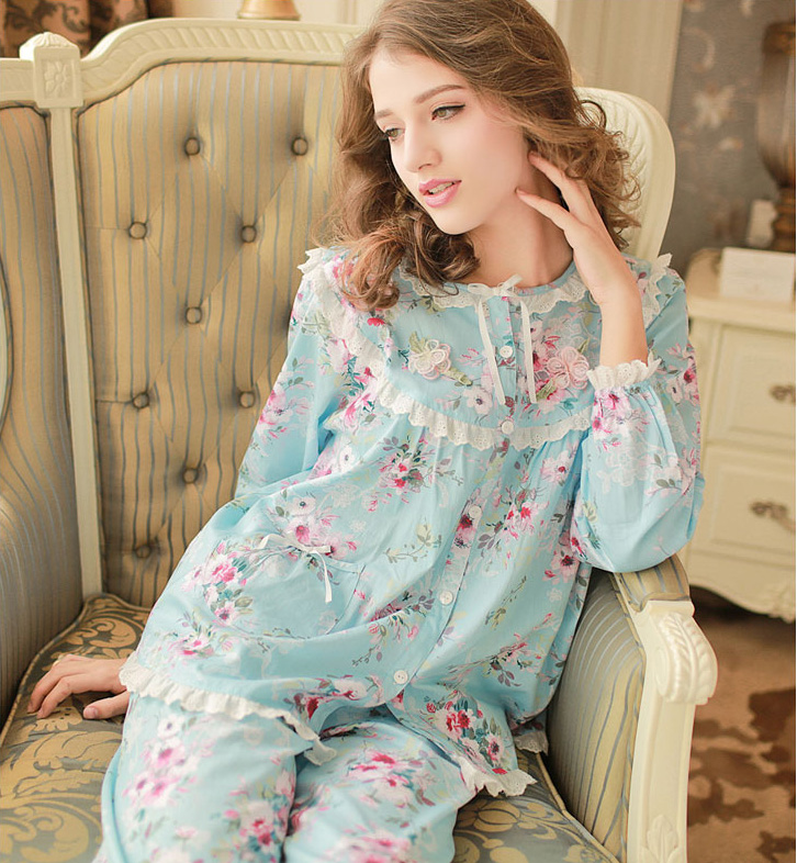 100%睡衣女春秋款长袖纯棉韩版清新学生秋冬全棉家居服月子服套装