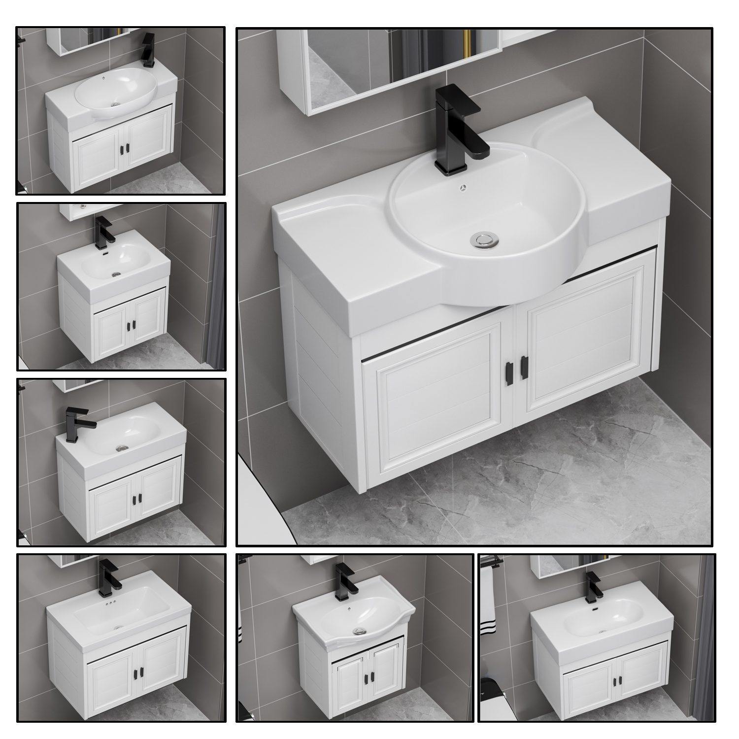 小尺寸太空铝挂墙式浴室柜阳台吊柜化妆室小户型洗漱台陶瓷洗手盆