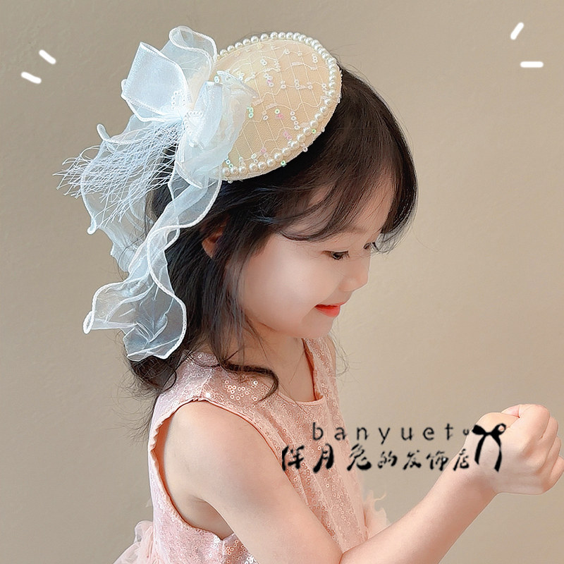 儿童公主头纱精致蝴蝶结女童网纱礼帽小女孩气质法式复古头饰发饰