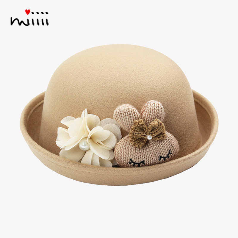 帽子韩国潮秋冬天圆顶卷边小礼帽女毛呢毛毡帽英伦男女童百搭圆帽