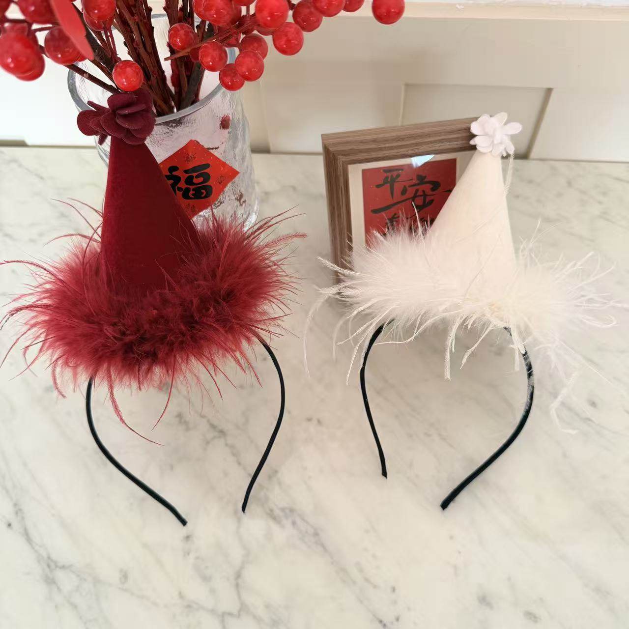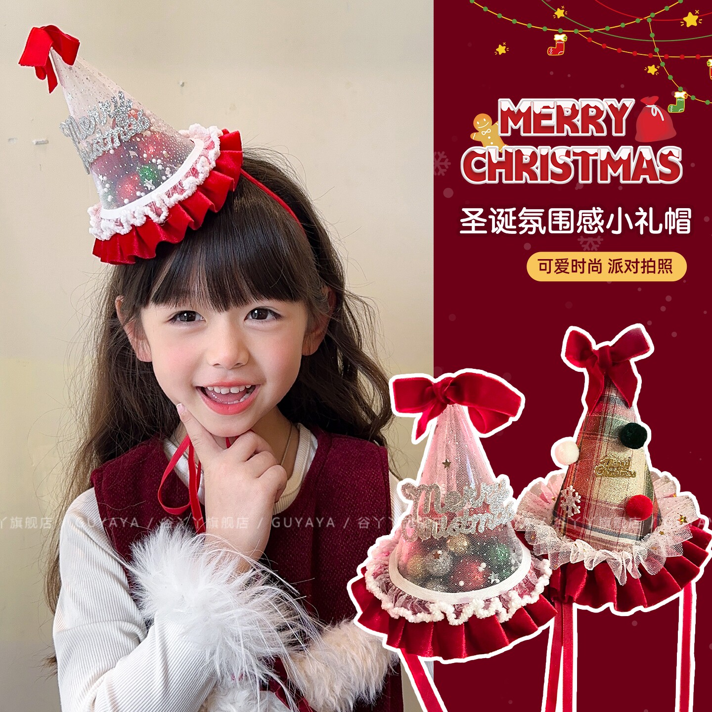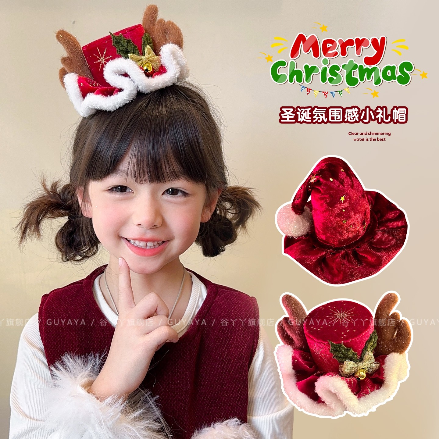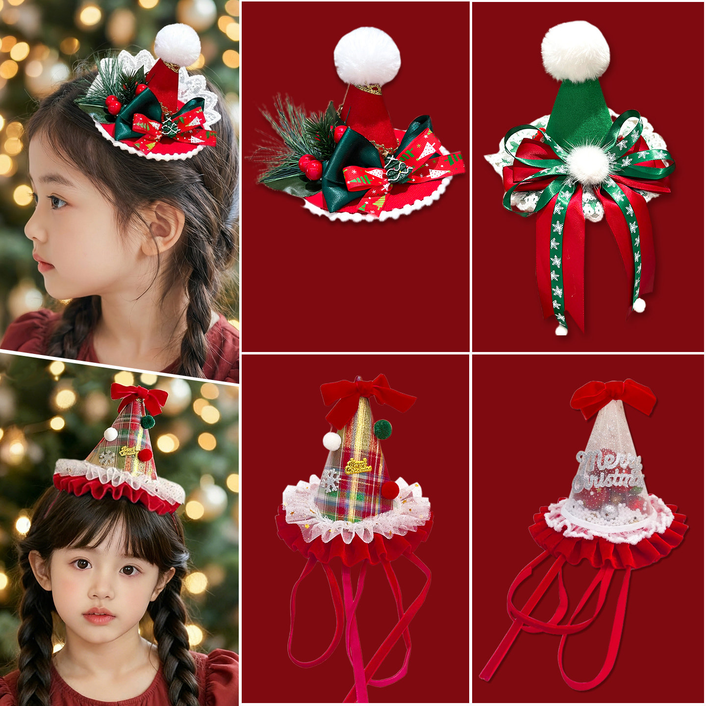 圣诞节儿童毛绒帽子发夹女童蝴蝶结发饰圣诞帽头顶小女孩礼帽发卡