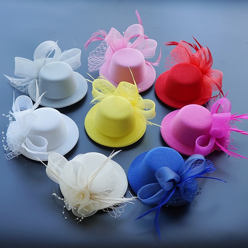 新款万圣节小帽子舞台演出魔术高帽发饰羽毛女童礼帽头饰复古发夹