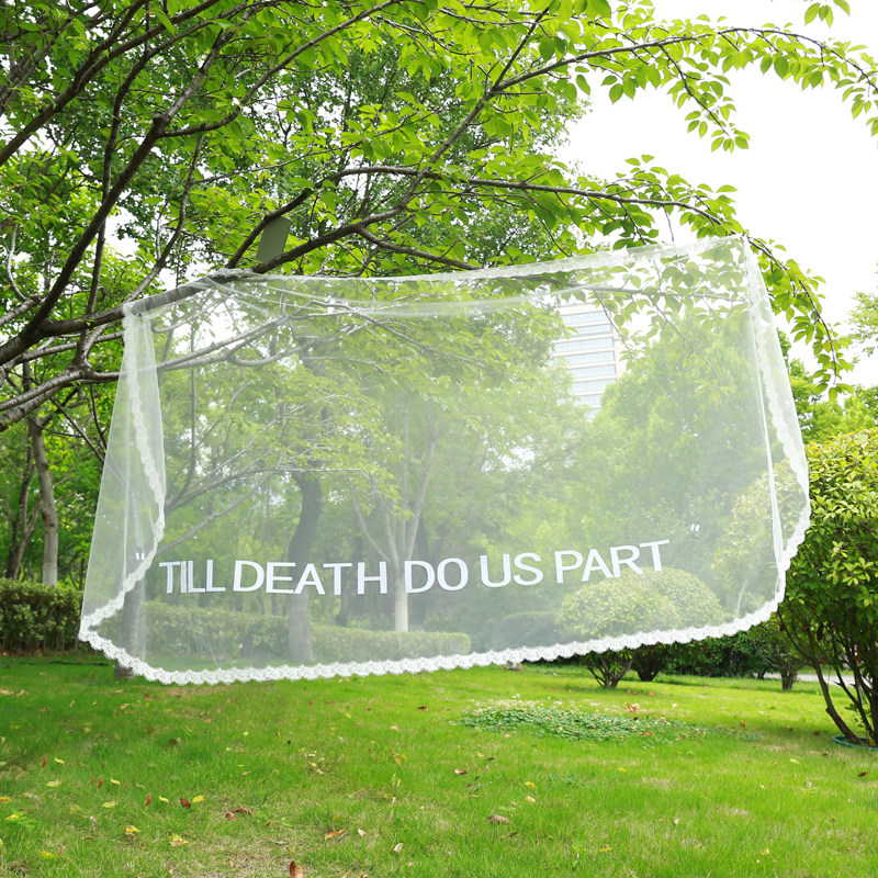 超长3米蕾丝边白字母头纱外景草坪婚纱摄影拍照道具新娘字母头纱