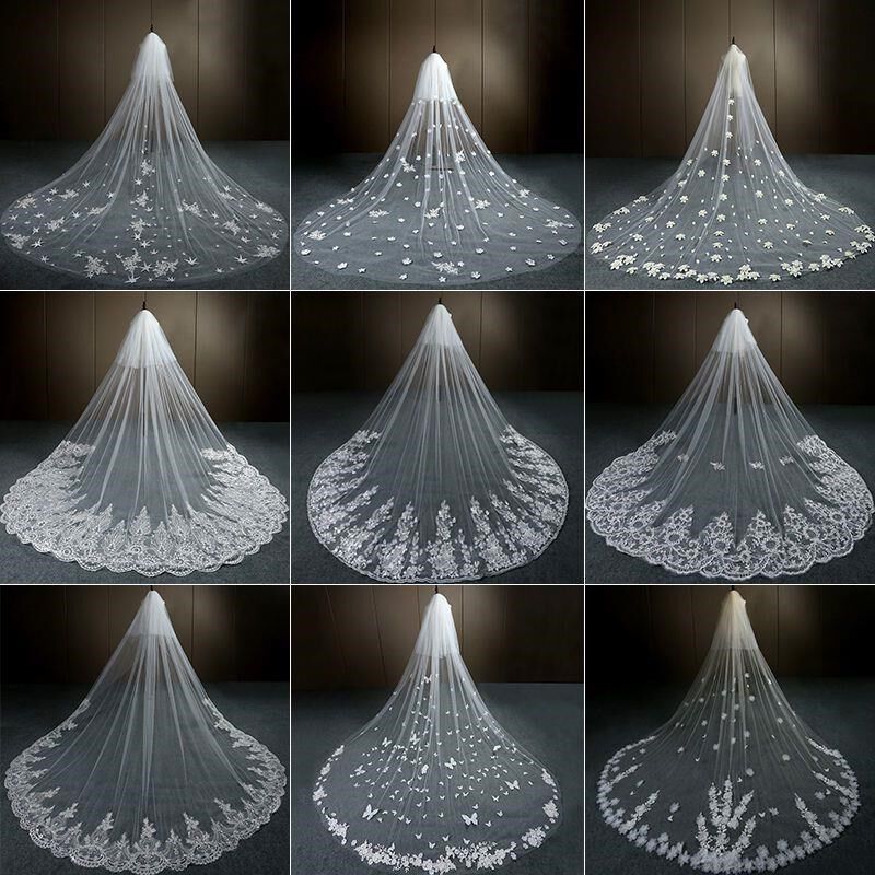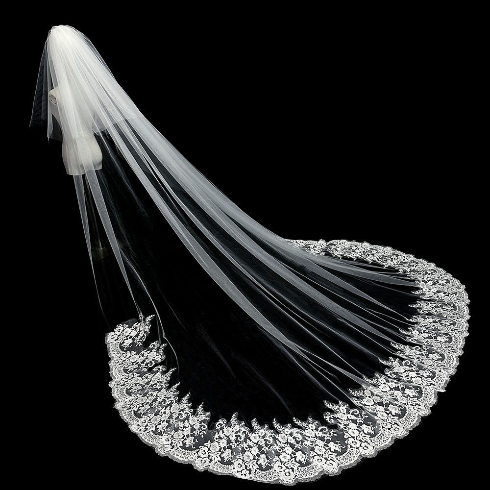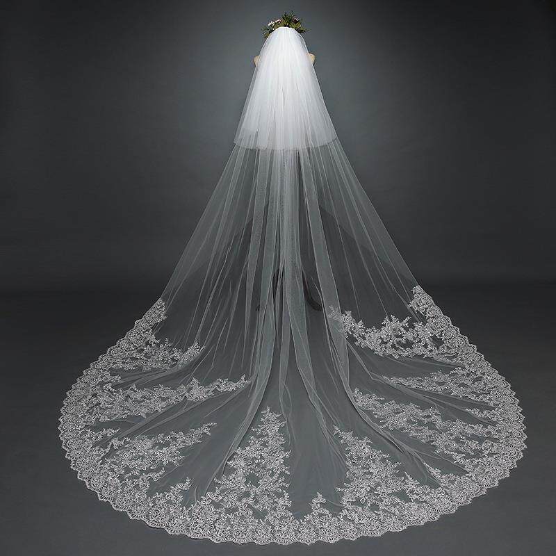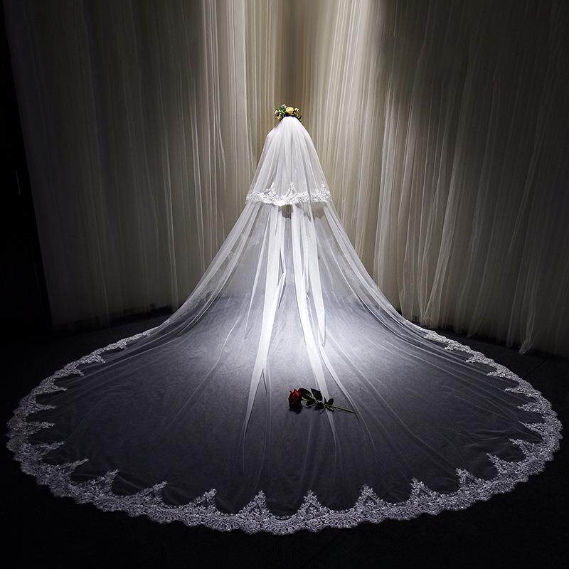 包邮新娘头纱超长头纱软结婚x礼新款蕾丝拖地大3米宽韩式拖尾头纱