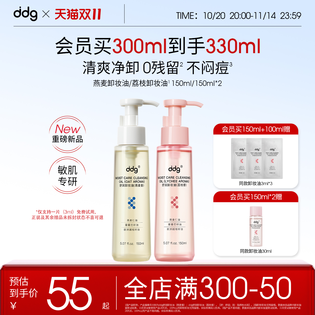 【双11开抢】ddg燕麦荔枝卸妆油3.0双支装温和清洁女眼唇卸妆液水