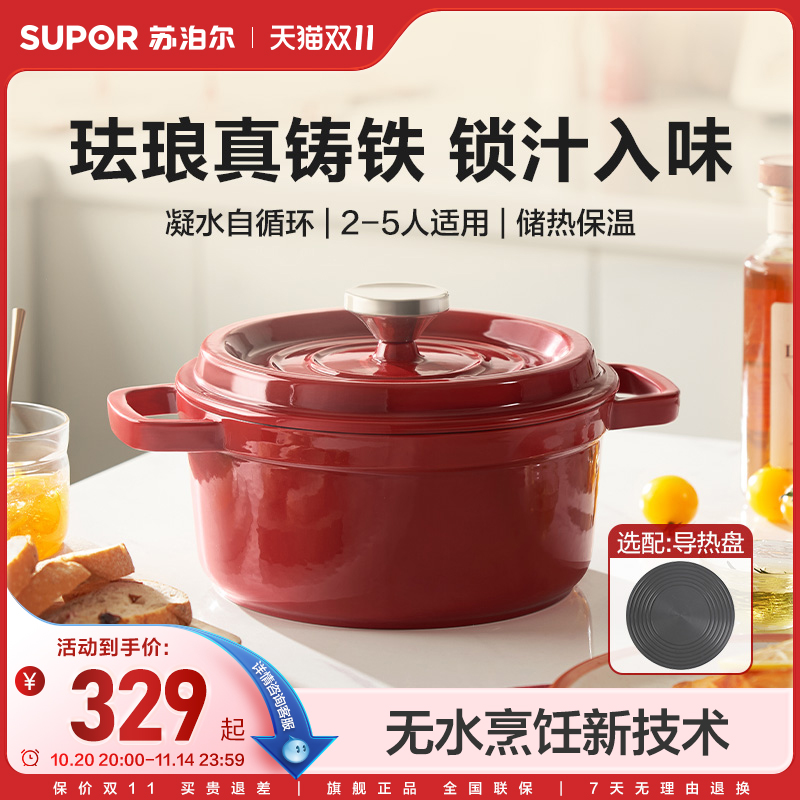 苏泊尔陶瓷汤锅家用不粘锅加厚火锅锅双耳蒸锅蒸煮炖锅燃气电磁炉