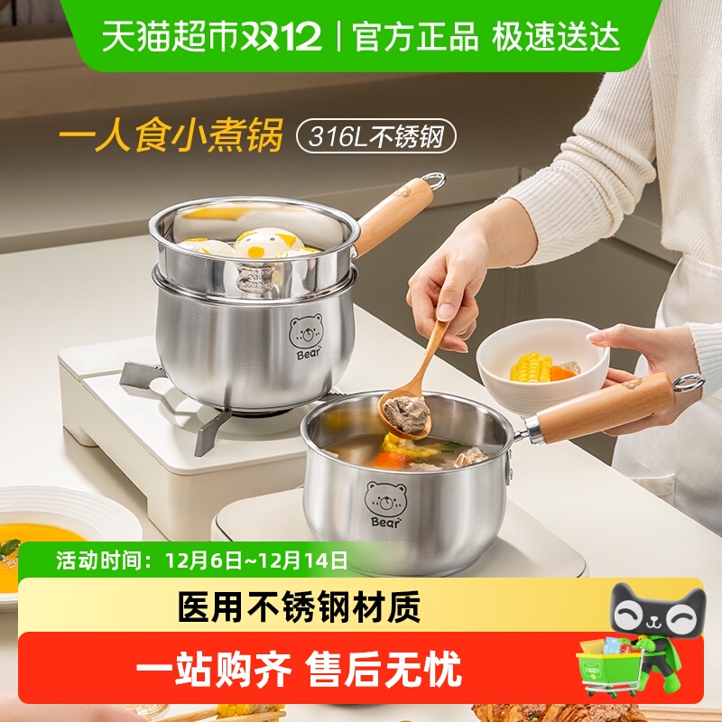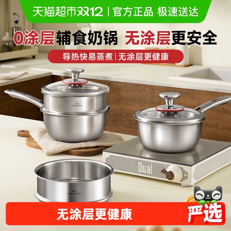 双枪316不锈钢小奶锅宝宝辅食锅婴儿煎煮一体一人食小锅不粘汤锅