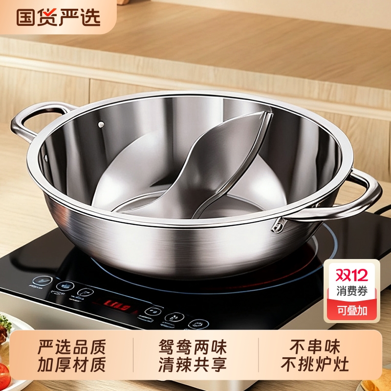 不锈钢鸳鸯锅火锅电磁炉专用家用锅具单锅清汤锅2025年新款火锅盆