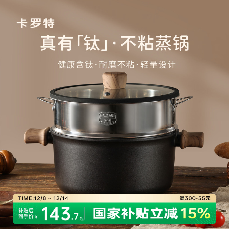 卡罗特蒸锅家用大容量钛不粘汤锅双耳煮炖锅一体电磁炉燃气灶专用
