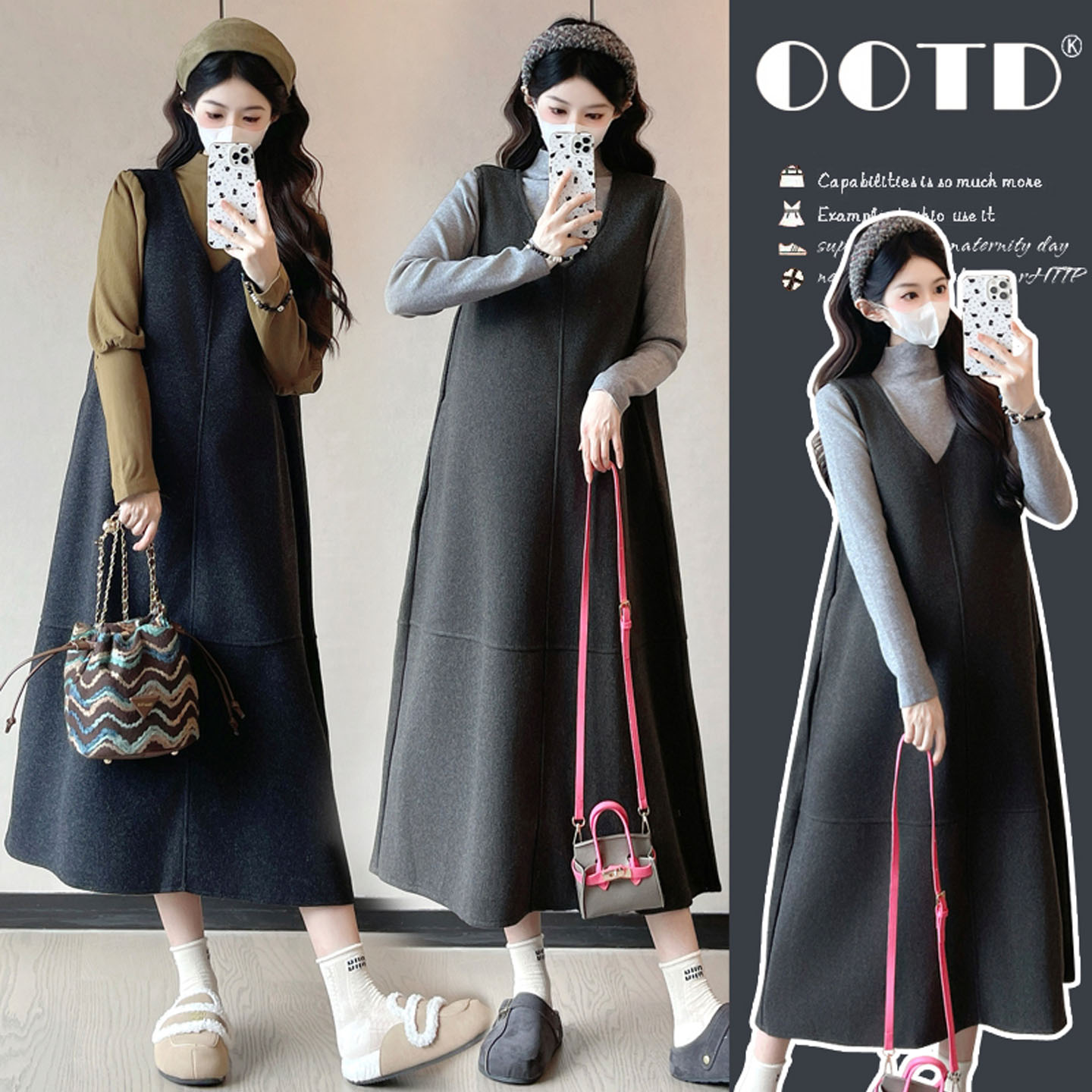大码孕妇背心裙秋冬2025新款韩版时尚显瘦马甲裙+打底衫套装200斤