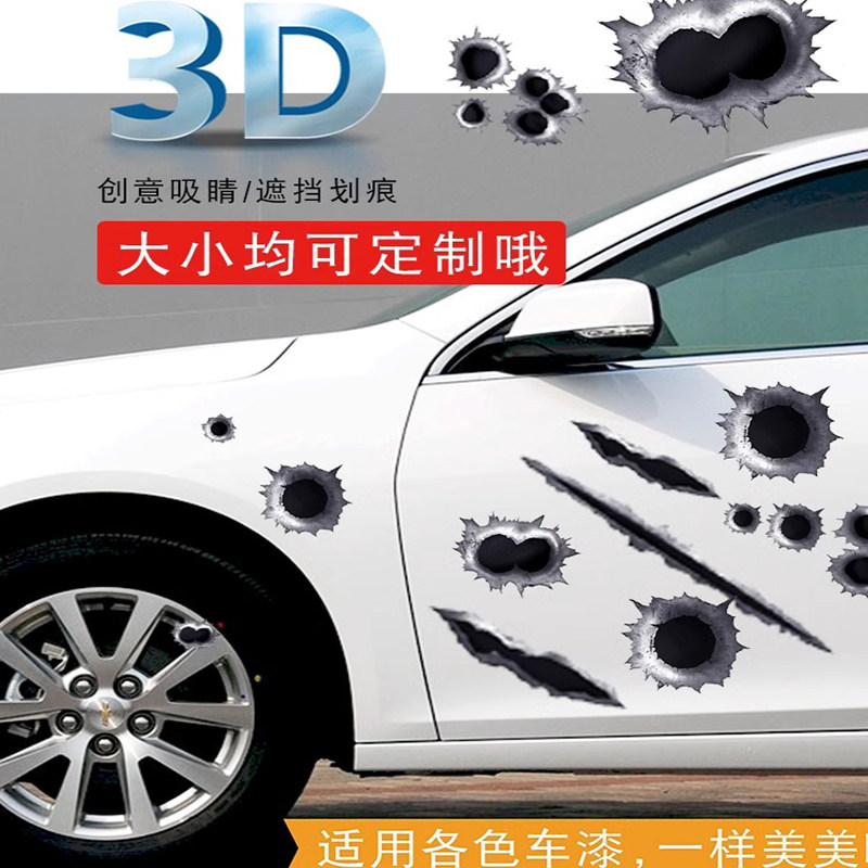 子弹立体个性车贴弹孔车身贴纸汽车遮挡划痕保险杠遮盖改装创意贴