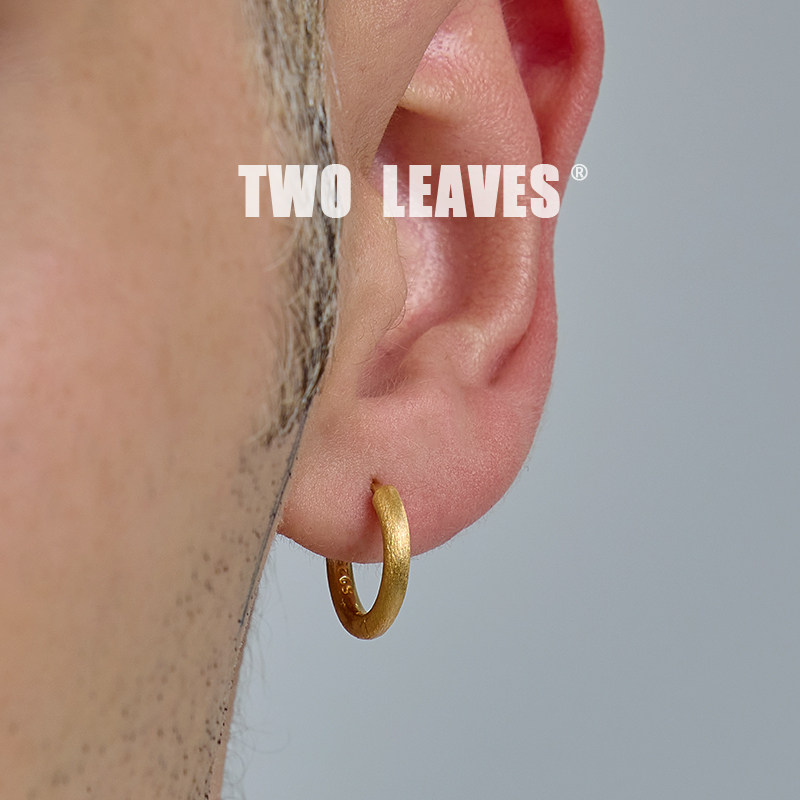 TWO LEAVES S925纯银金色拉丝耳环镀18K金极简哑光男女实心素耳圈