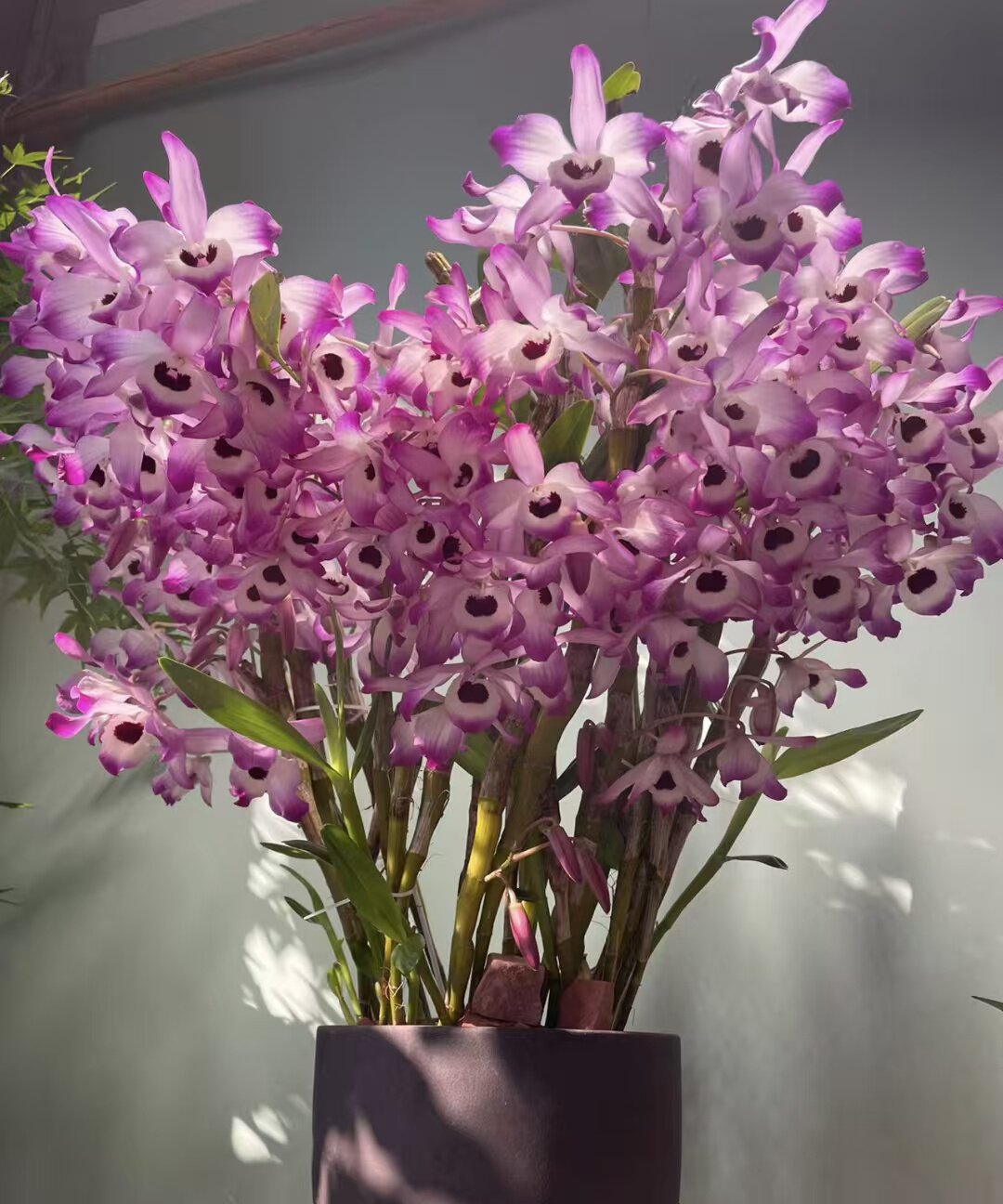 石斛兰基地直销带花苞紫云好养泼墨室内水培浓香年宵花卉盆栽绿植
