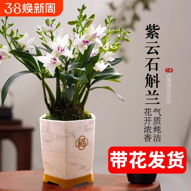 白花紫云石斛兰盆栽带花苞室内禅意花卉绿植小盆栽兰花香水石斛兰