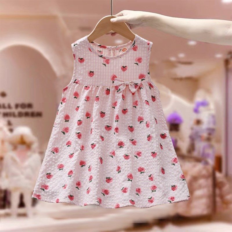 女童夏季碎花连衣裙2024女孩韩版休闲裙子儿童夏装公主裙纯棉短裙