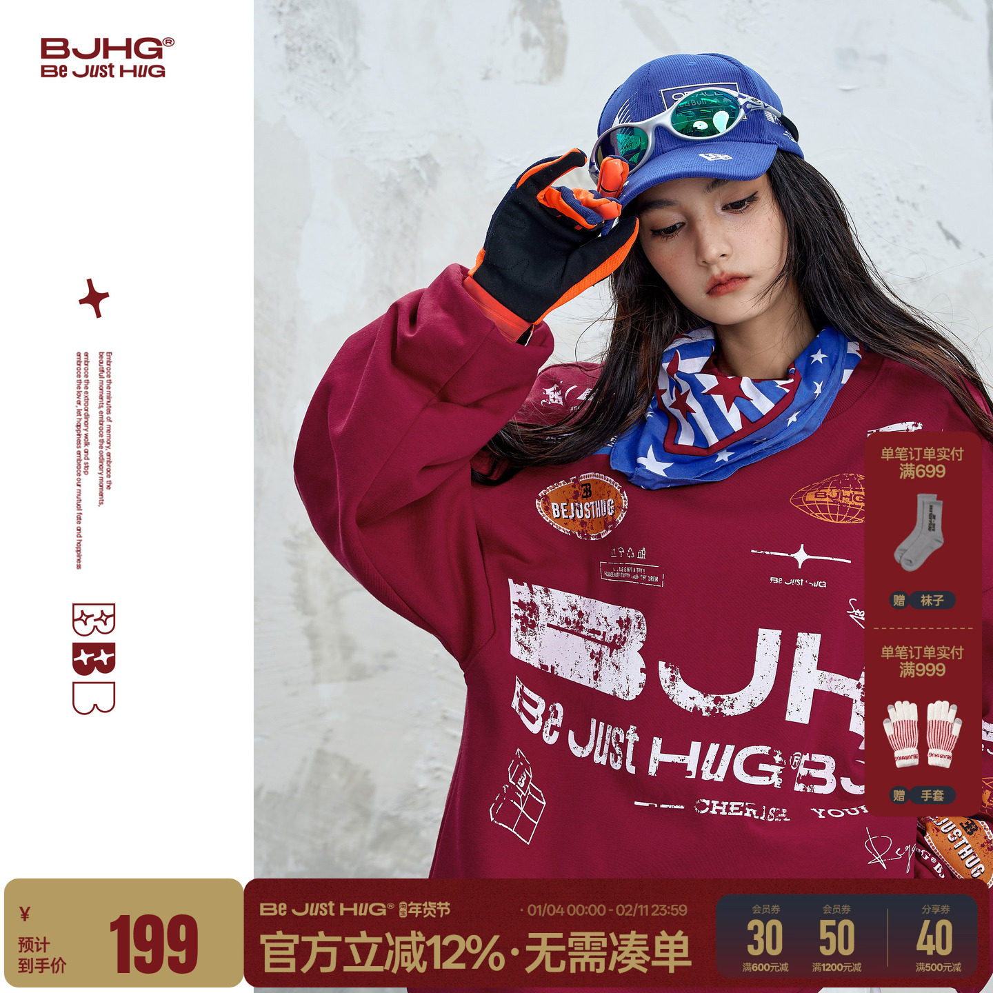 BJHG不计后果新年款美式赛车风卫衣男款冬宽松圆领暖皮内搭上衣女