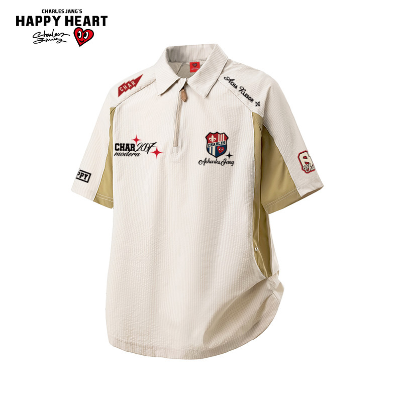 查尔斯桃心美式短袖polo衫男女夏季2026新款宽松T恤骑行赛车衣服