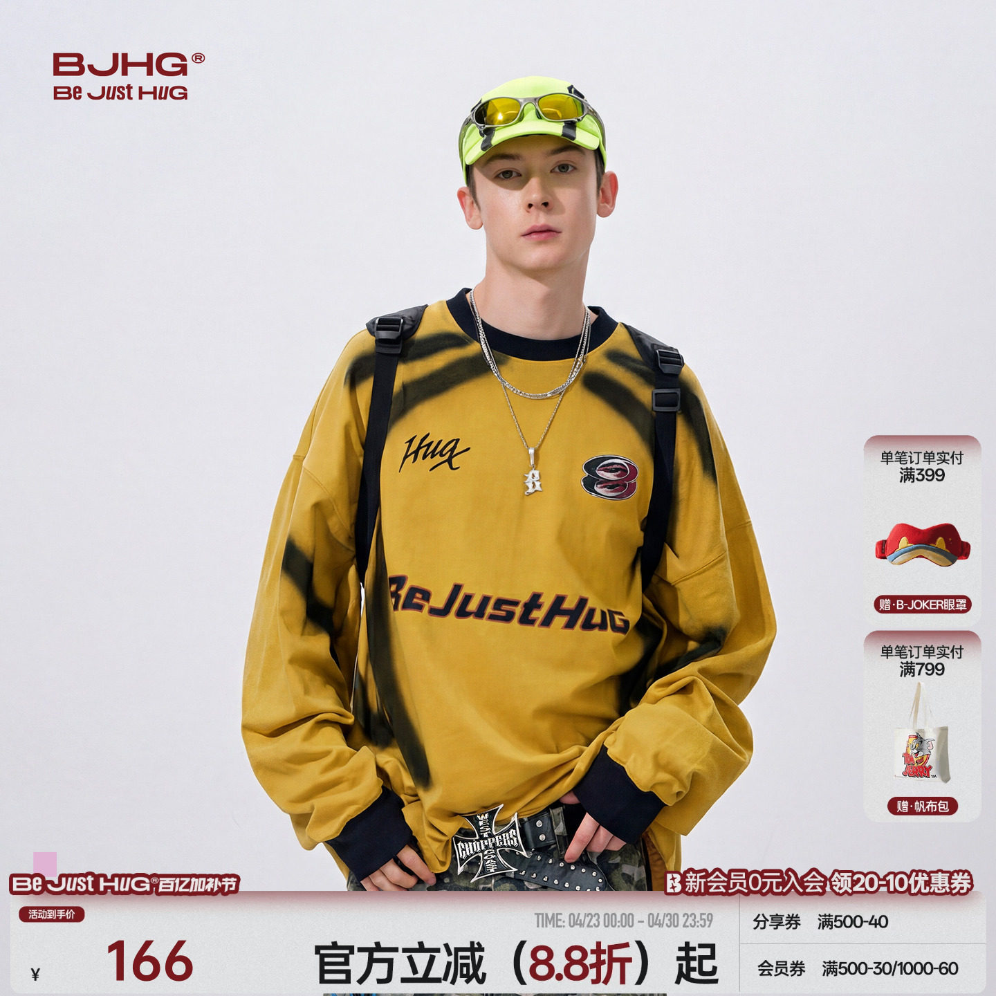 BJHG不计后果 美式球衣长袖T恤打底衫男款春hiphop赛车运动卫衣女