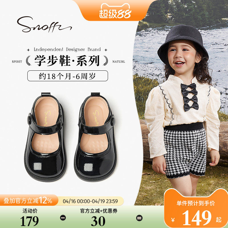 斯纳菲女童皮鞋黑色亮皮公主鞋春秋新款儿童学生软底防滑宝宝单鞋