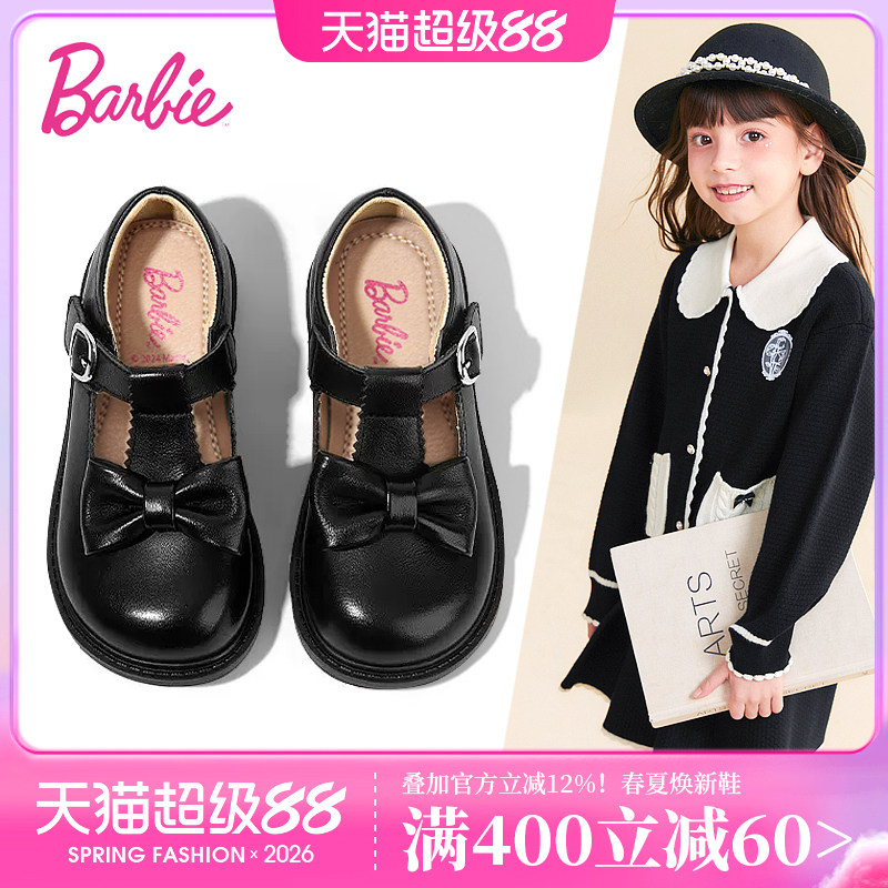 芭比童鞋女童皮鞋2026新款春秋单鞋学生演出鞋黑色小皮鞋儿童鞋子