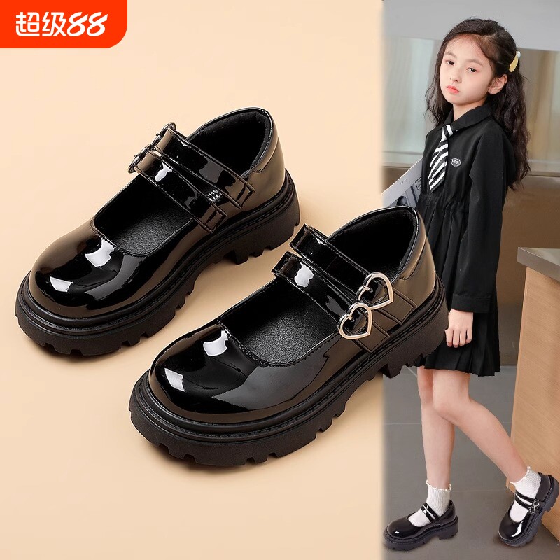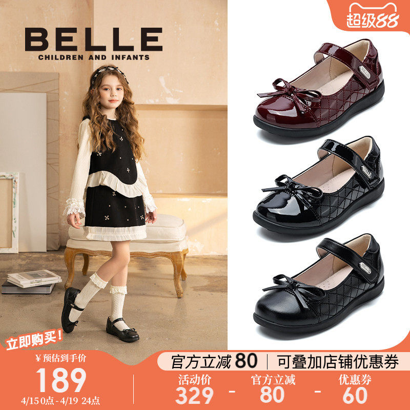 百丽童鞋女童黑皮鞋2026春季新款儿童演出鞋小女孩学生礼仪小皮鞋
