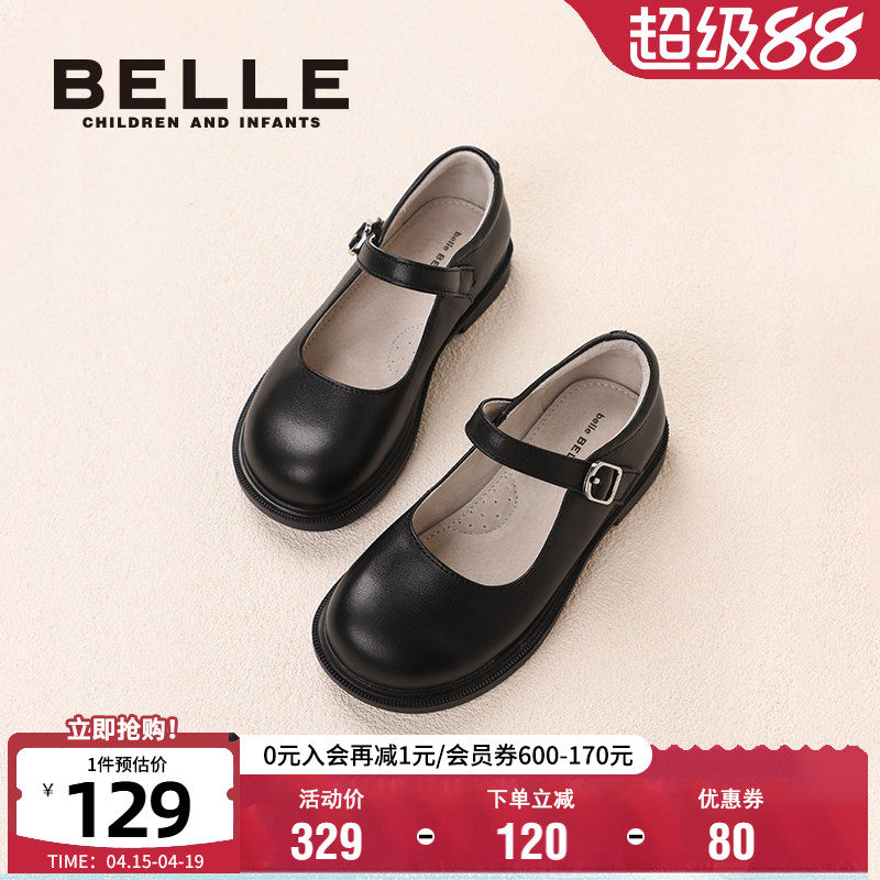 百丽童鞋女童黑皮鞋学生校园表演鞋春季新款儿童时尚单鞋宝宝软底