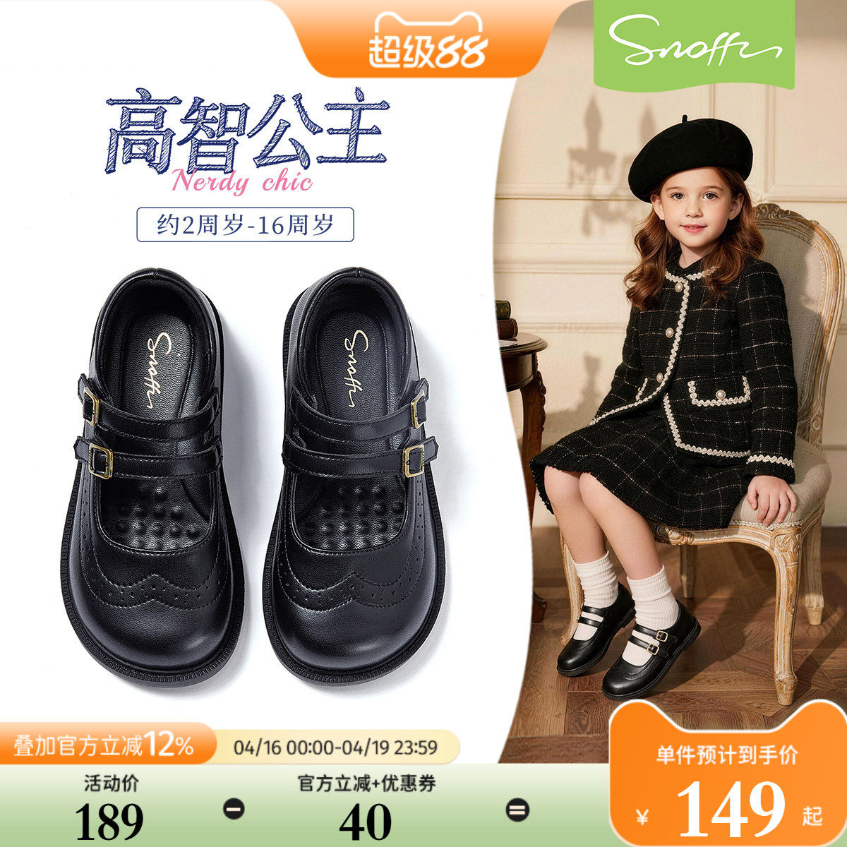 斯纳菲儿童学生皮鞋黑色女童小黑鞋演出鞋配礼服2026春秋新款校园