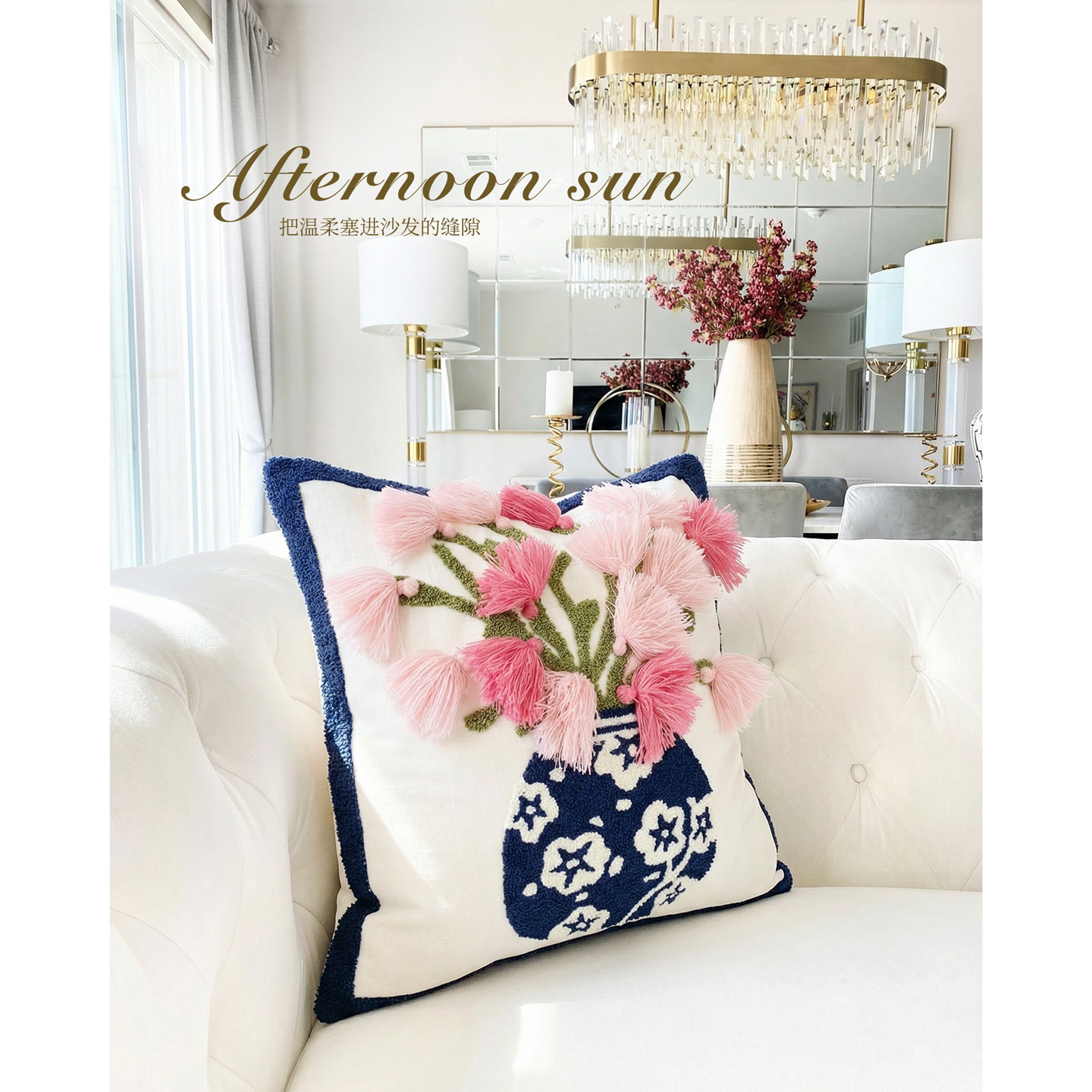 曼塔花园沙发抱枕靠垫靠枕床上短毛绒可拆洗美式田园轻奢高档定制