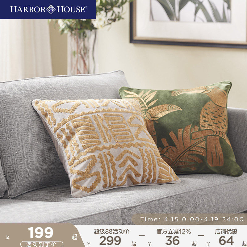 HarborHouse美式家居沙发靠枕轻奢重工抱枕绒布绣花靠垫套Papua