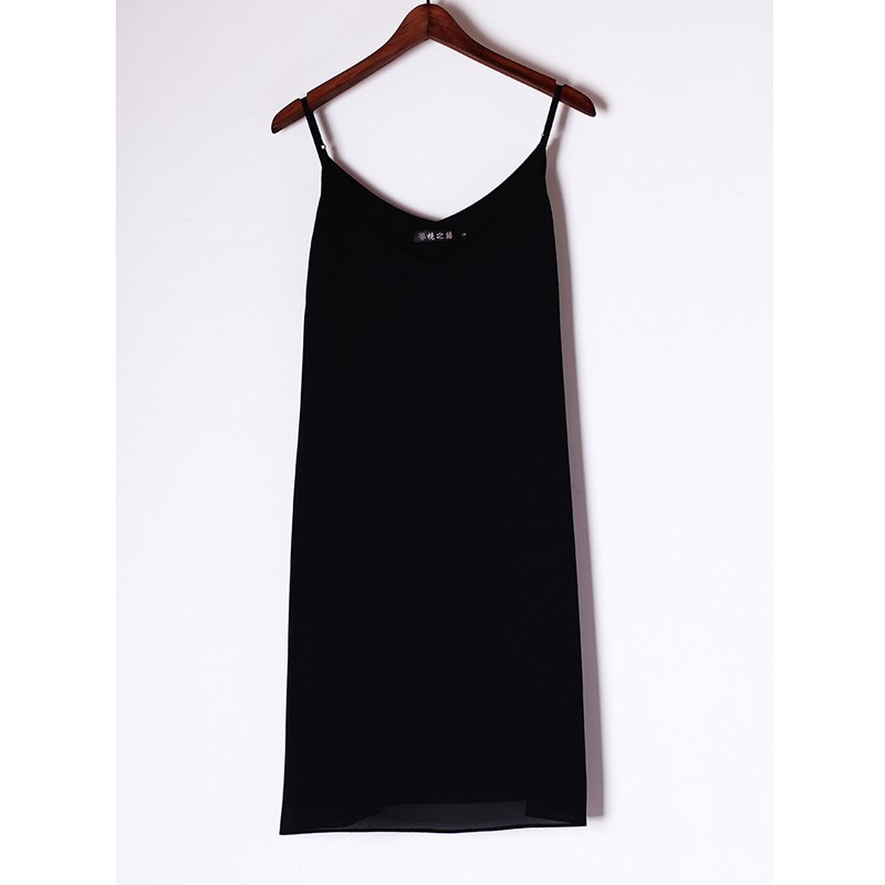 韩版中长款吊带背心裙雪纺连衣裙V领女内搭打底裙无袖宽松衬裙夏