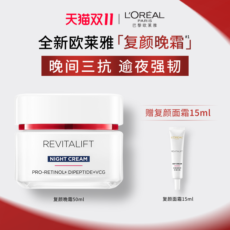 欧莱雅复颜视黄醇抗老抗皱紧致保湿日霜积雪草晚霜大红瓶面霜50ml