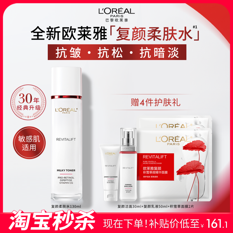欧莱雅复颜水乳套装礼盒妈妈护肤品紧致抗老抗皱补水保湿洗面奶女