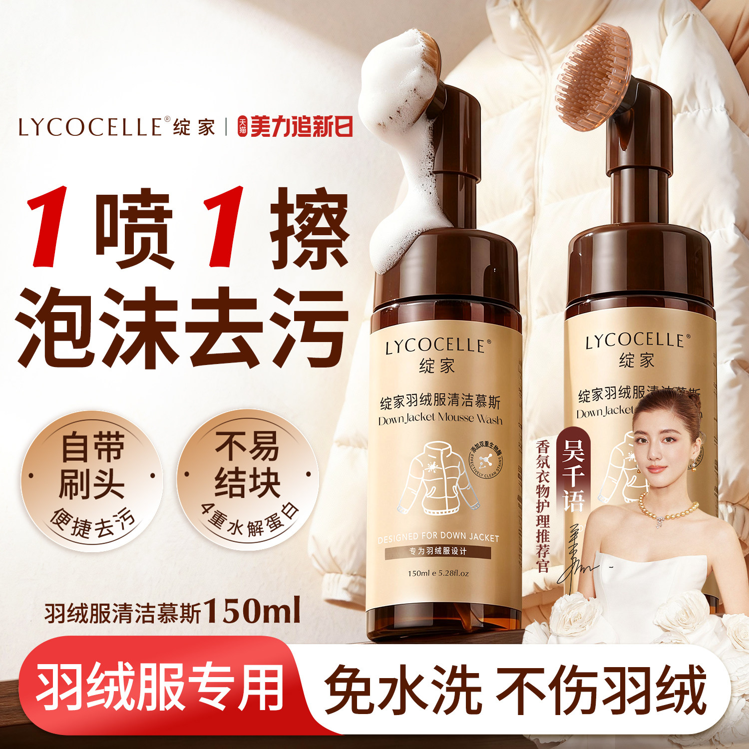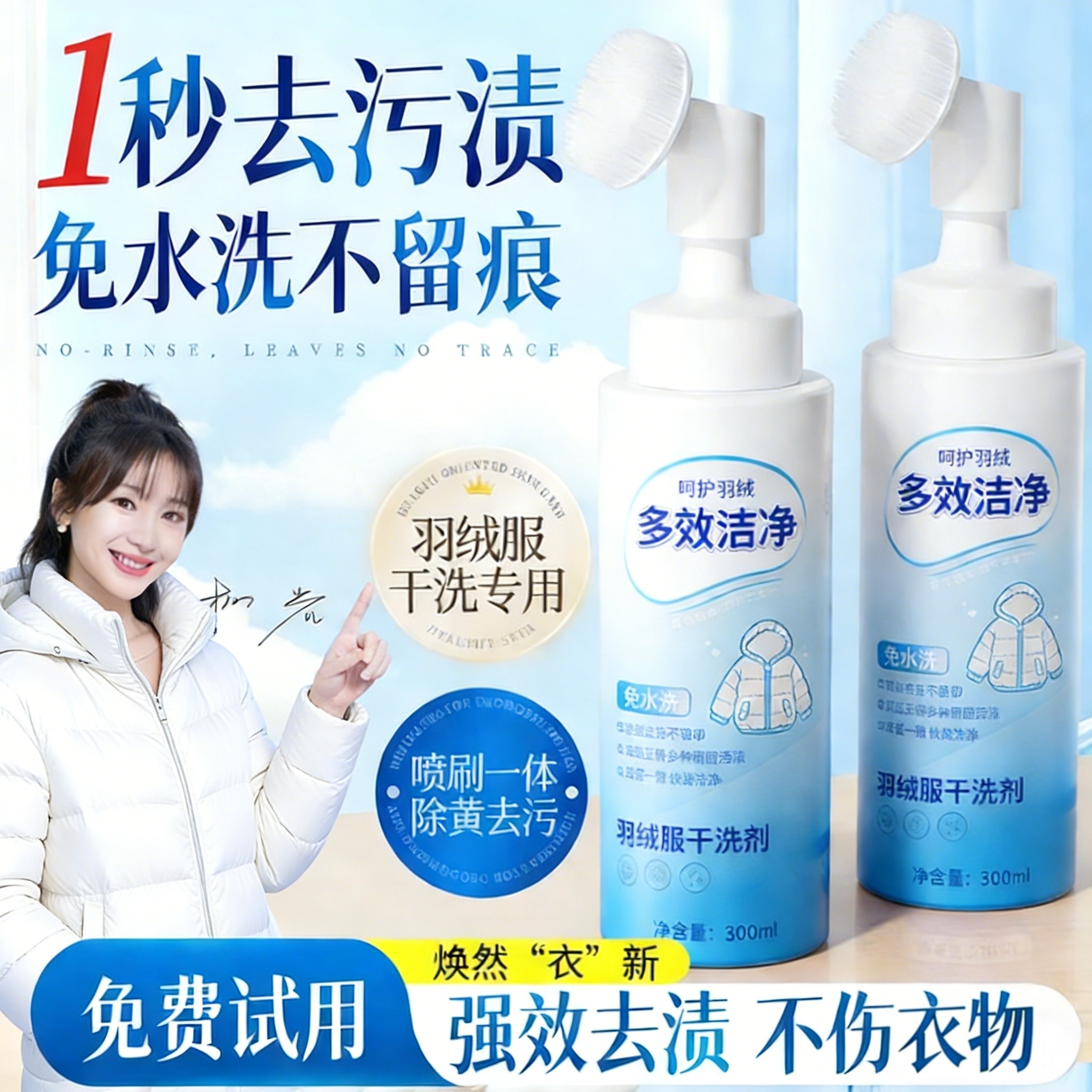 羽绒服干洗剂免水洗轻松去污渍刷洗一体强效清洁速干羽绒服清洁刷