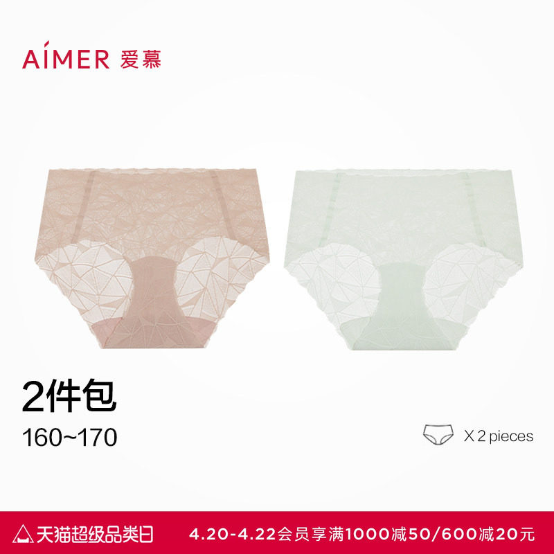 【2件包】爱慕光影女士内裤抗菌棉质底裆净痕轻薄蕾丝中腰平角裤
