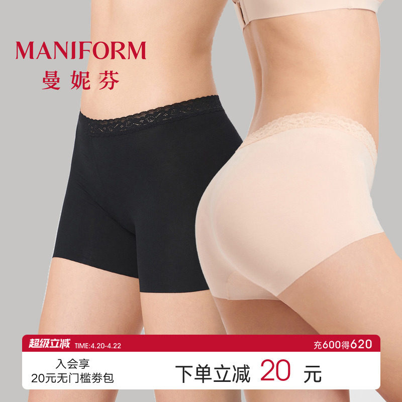 2条曼妮芬60S莫代尔防走光女士安全裤蕾丝平角内裤轻薄舒适打底裤
