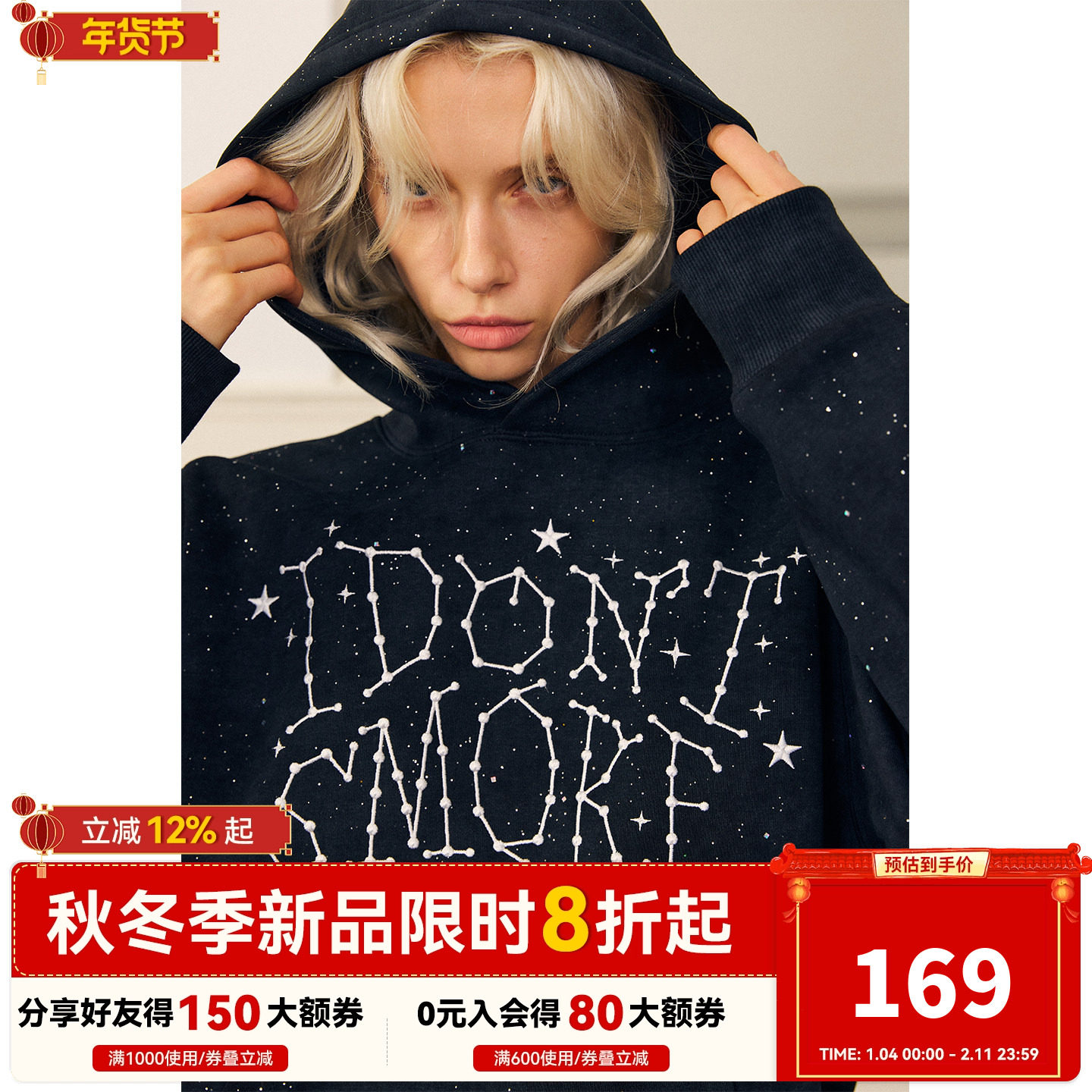 明星同款DONSMOKE满天星星座落肩卫衣银河系反光潮流时尚连帽卫衣