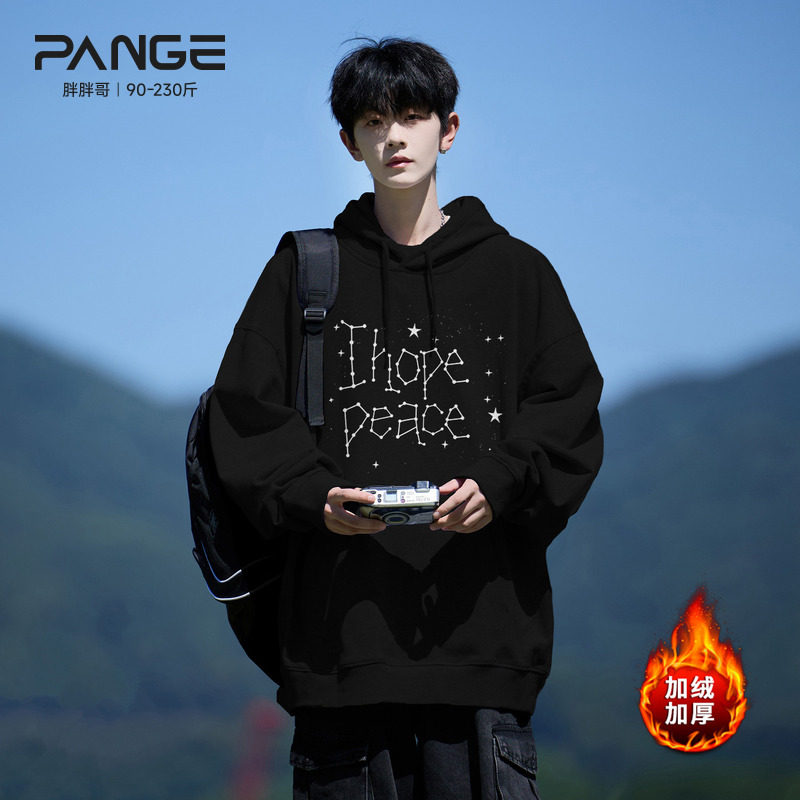 胖胖哥420g星座连线连帽卫衣男秋季独特设计感宽松大码加绒帽衫潮