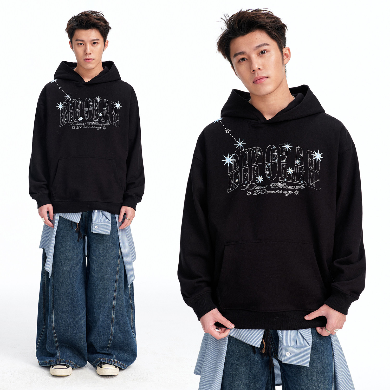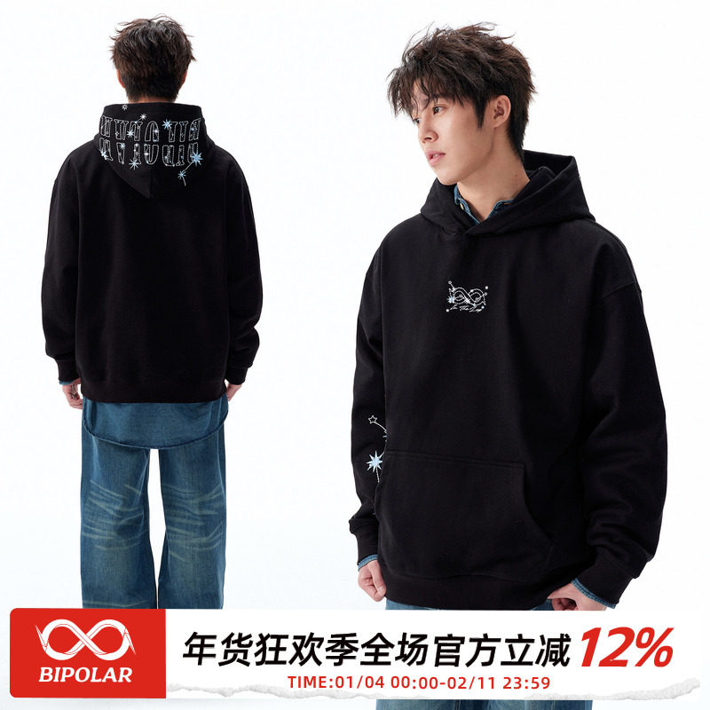 BIPOLAR星座珍珠刺绣连帽卫衣美式休闲宽松百搭上衣春秋长袖男女