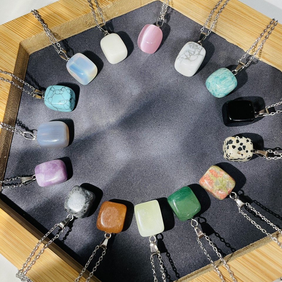 天然石水晶不定型项链卫衣配饰链子随型星座男女情侣项链方形吊坠