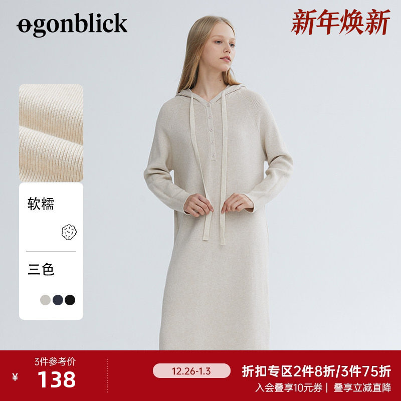 - 毛衣裙中长款 两件套