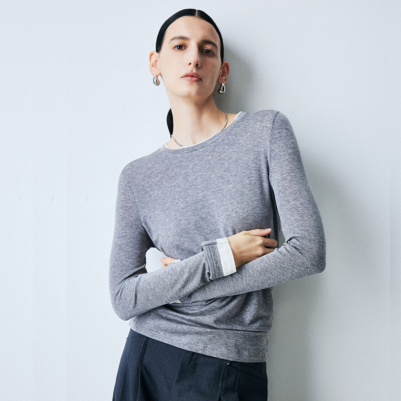 - 圆领紧身针织衫女长袖
